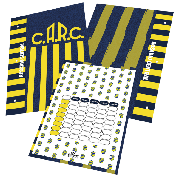 Carpeta Escolar N3 2 Tapas Con Organizador De Rosario Central Escudo Retro