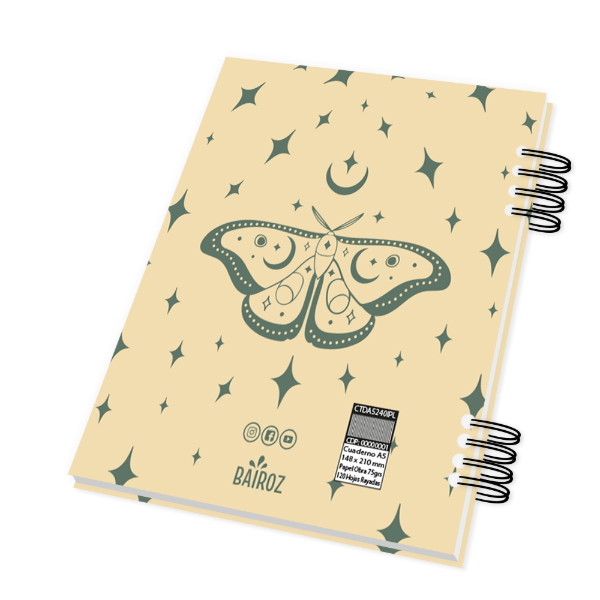 Este cuaderno cuenta con 120 hojas rayadas, cuadriculadas o lisas ofreciendo un amplio espacio para tus anotaciones. La línea Anotador de Bairoz está diseñada para aquellos que valoran la calidad y la estética en sus herramientas de escritura, convirtiéndolo en un compañero ideal para estudiantes, profesionales y creativos.
