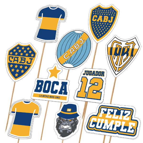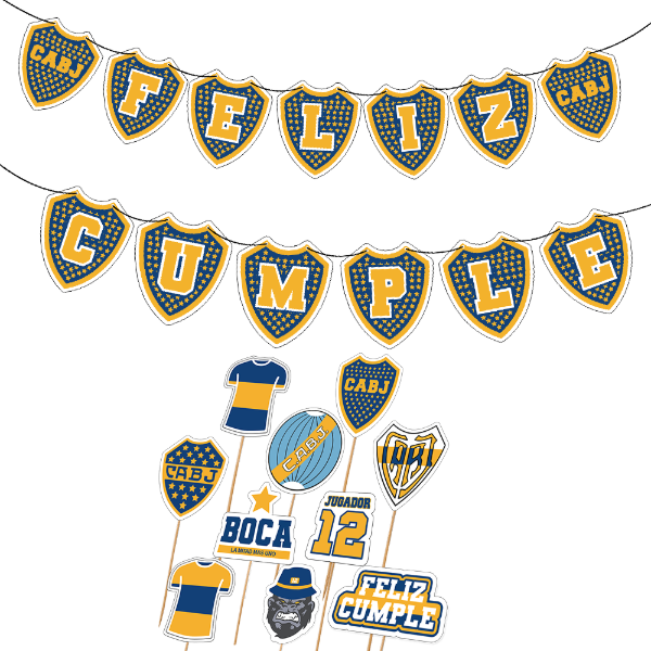 Kit Banderin Feliz Cumple + Topper Torta Boca Juniors