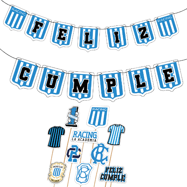 Kit Banderin Feliz Cumple + Topper Torta Racing Club