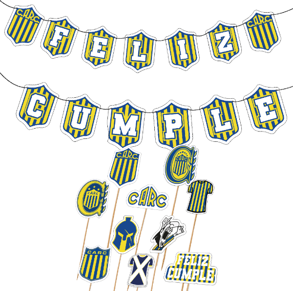 Kit Banderin Feliz Cumple + Topper Torta Rosario Central