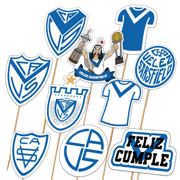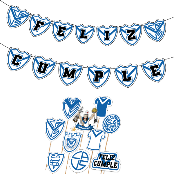 Kit Banderin Feliz Cumple + Topper Torta Velez Sarsfield