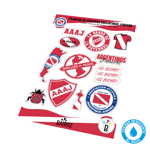 Descripción del producto: Plancha De Sticker (Grande) Argentinos Juniors Resistente Al Agua Jgo 1