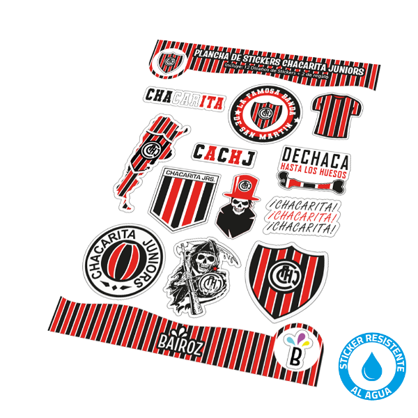 Descripción del producto: Plancha De Sticker (Grande) Chacarita Juniors Resistente Al Agua Jgo 1