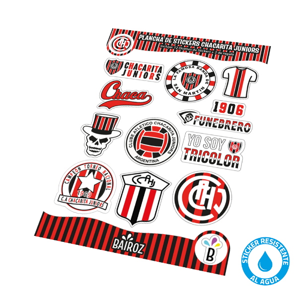 Descripción del producto: Plancha De Sticker (Grande) Chacarita Juniors Resistente Al Agua Jgo 2