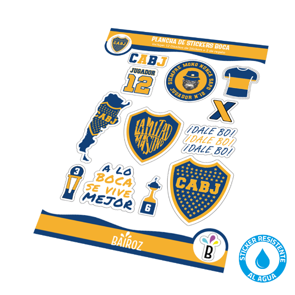 Descripción del producto: Plancha De Sticker (Mediana) Boca Juniors Resistente Al Agua Jgo 1