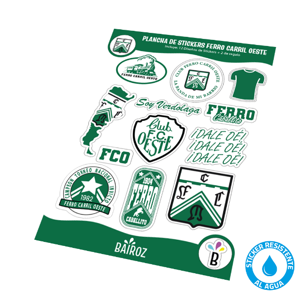 Descripción del producto: Plancha De Sticker (Mediana) Ferro Carril Oeste Resistente Al Agua Jgo 1
