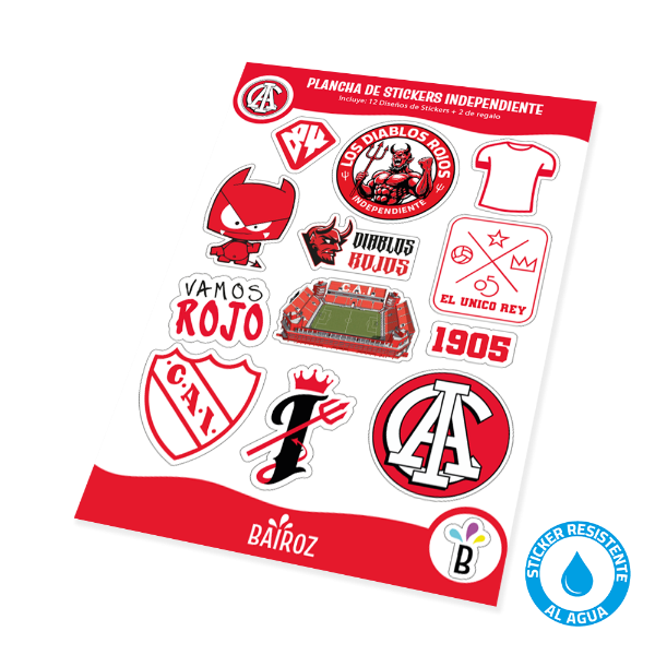 Descripción del producto: Plancha De Sticker (Mediana) Independiente Resistente Al Agua Jgo 2