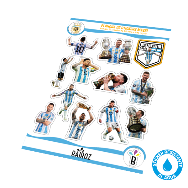 Descripción del producto: Plancha De Sticker (Mediana) Lionel Messi Resistente Al Agua Jgo 1