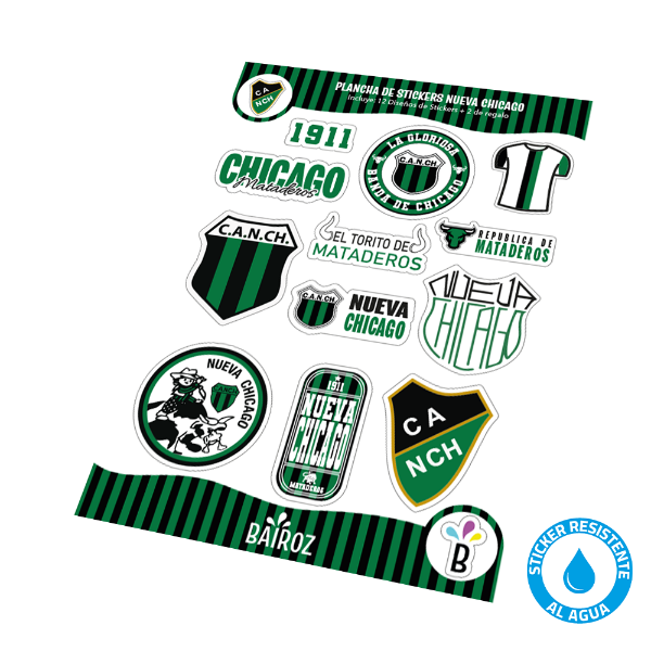 Descripción del producto: Plancha De Sticker (Mediana) Nueva Chicago Resistente Al Agua Jgo 2
