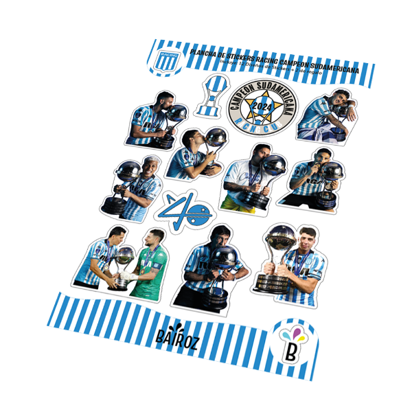 Descripción del producto: Plancha De Sticker (Mediana) Racing Campeon Sudamerica 2024