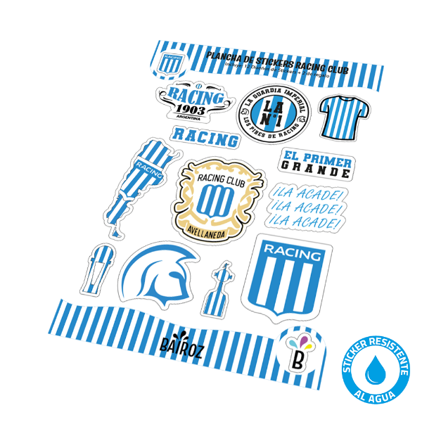 Descripción del producto: Plancha De Sticker (Mediana) Racing Club Resistente Al Agua Jgo 1