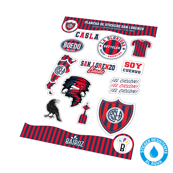 Descripción del producto: Plancha De Sticker (Mediana) San Lorenzo Resistente Al Agua Jgo 1