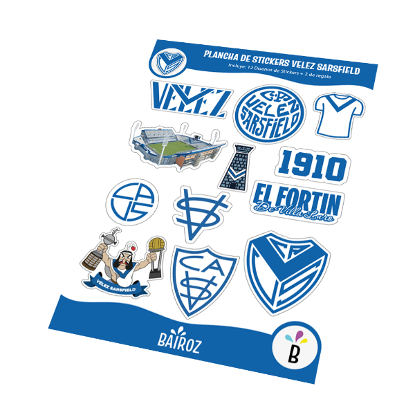 Descripción del producto: Plancha De Sticker (Mediana) Velez Sarsfield Jgo 2
