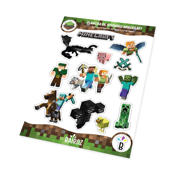 Descripción del producto: Plancha De Sticker (Mediana) Minecraft Jgo 1